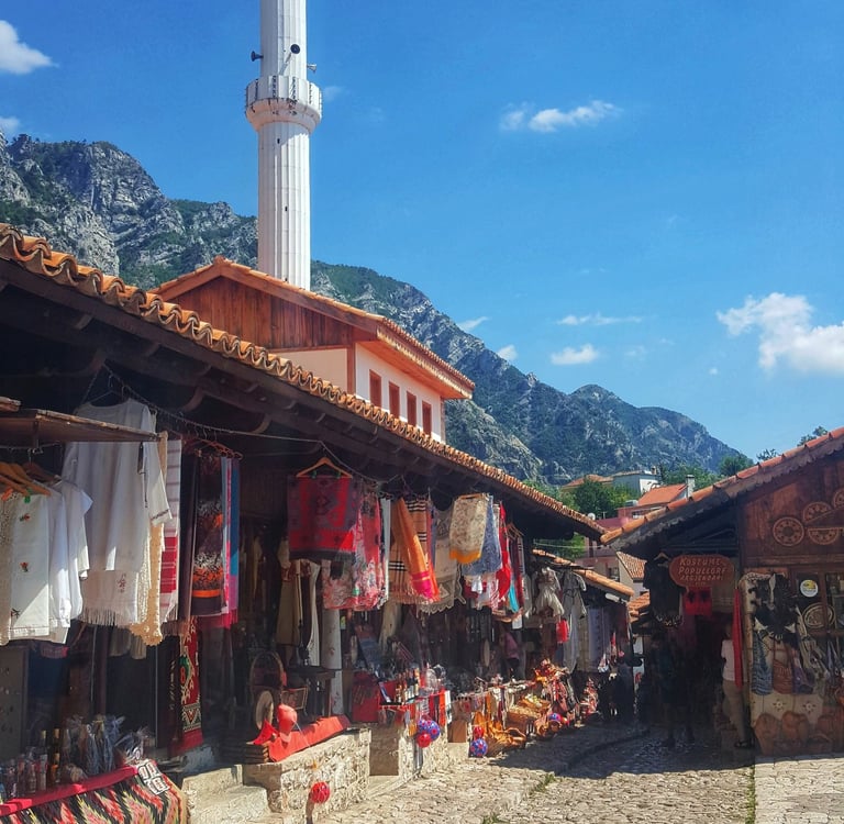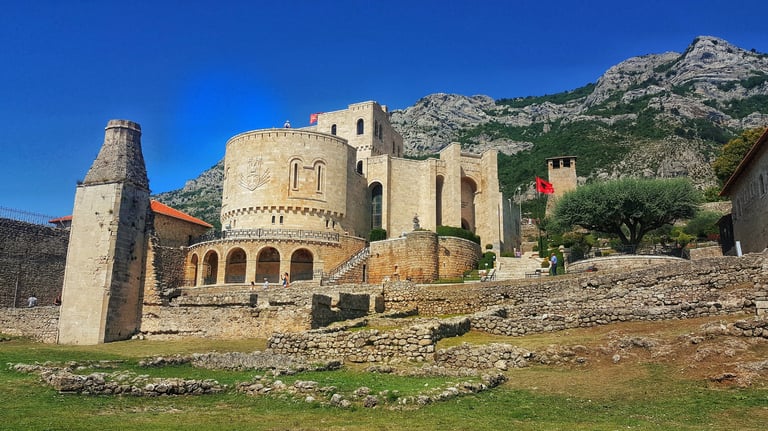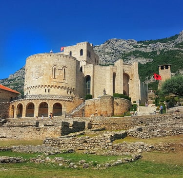 Krujë is a historic town nestled in the mountains of central Albania, known for its rich cultural heritage and striking medieval architecture.