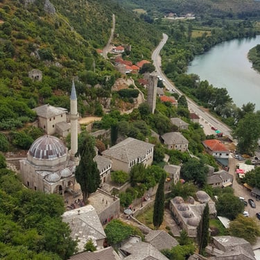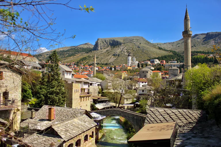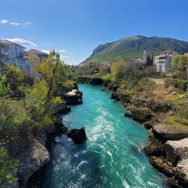 Mostar is a city where history and nature are deeply intertwined. The city's name derives from the word "mostari," meaning "bridge keepers," a reference to the guardians of the iconic Stari Most (Old Bridge), nestled between rugged mountains and split by the emerald Neretva River.
