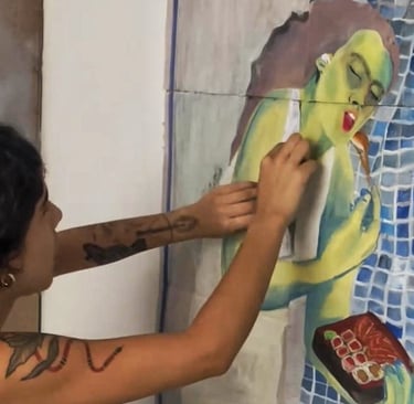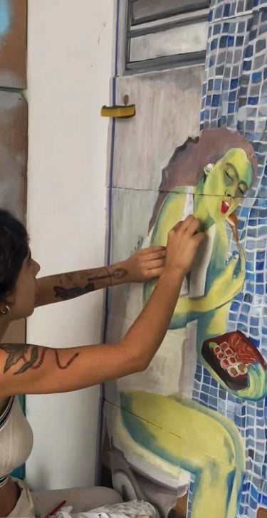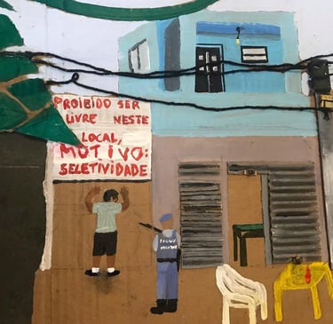 'Desire For the Infinite' reflects on the selective impacts of Brazil's drug war policy, which disproportionately affects the poor, Black individuals, young people from marginalised communities, and those abandoned and unjustly treated by the State and capitalist society. Her art is a response to these injustices, aiming to give a voice to the oppressed.