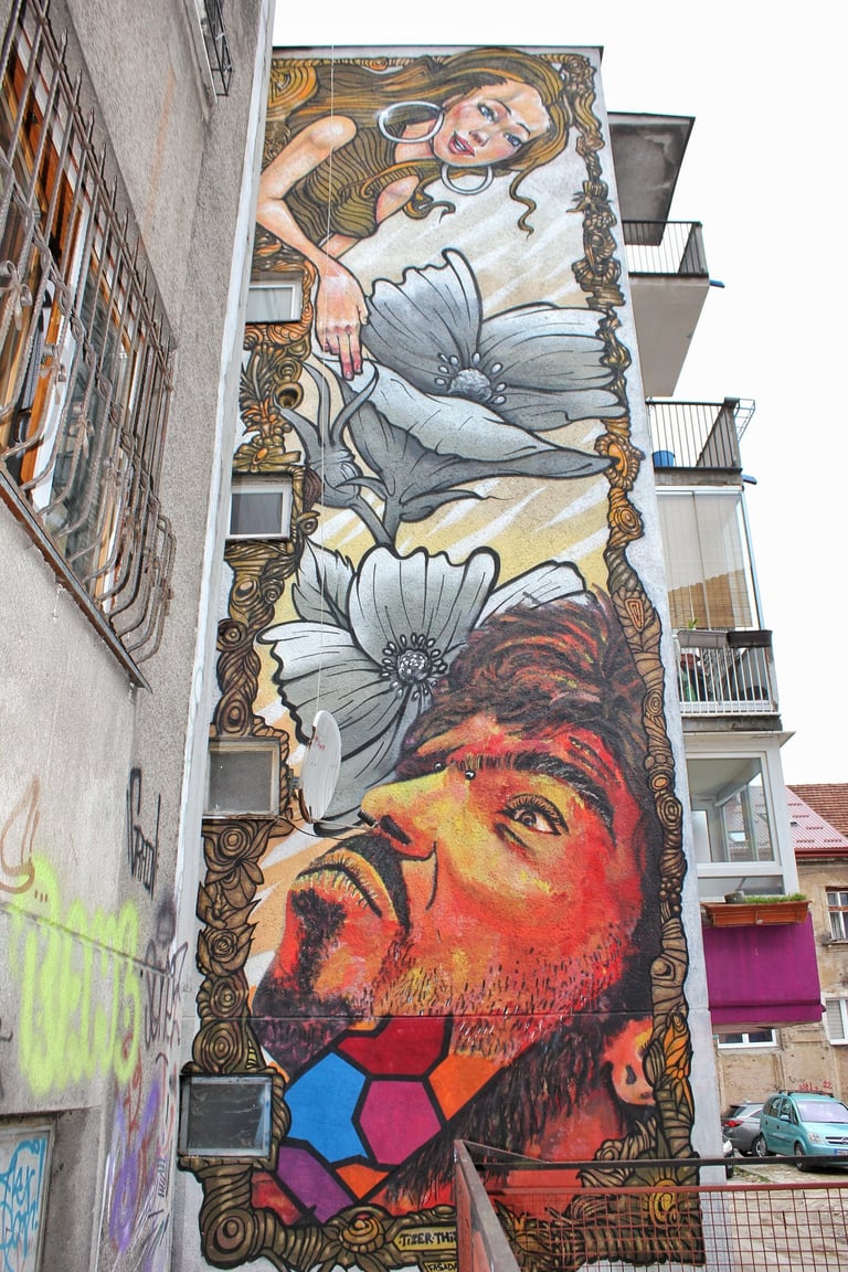 These were on the side of a wide building, and it was impossible to miss. The colours so bright and the design super detailed, making it pop against the more traditional buildings around it.