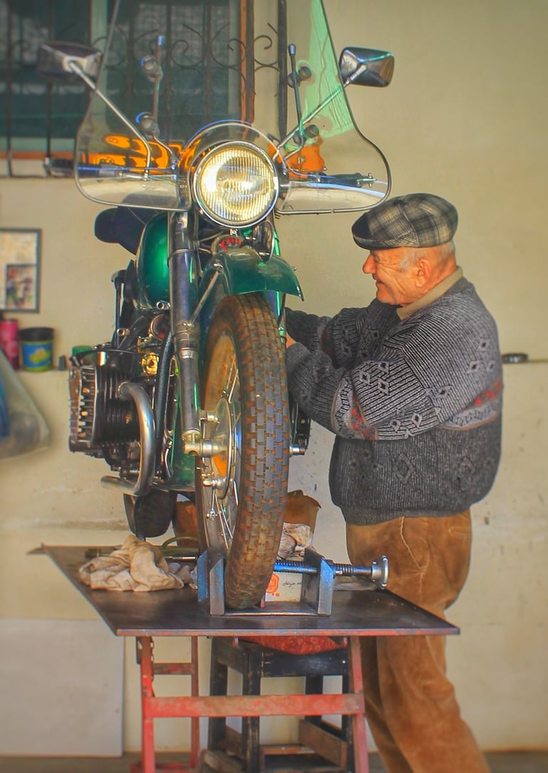 As I turned around, still smiling at these little interactions, I noticed a gentleman working on his bike. I quickly positioned my camera, took the shot, and moved on, not wanting to disturb him. It wasn’t until later, when I was going through my photos, that I realised what a perfect moment I had captured. The genuine smile on his face, the joy I could feel in that moment as he worked on his bike—Every time I look at the photo, I can’t help but smile.